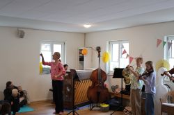 Den Start gaben die "Wilden Pferde" (Klavier), hier konnten sich alle Kinder im Galopp erstmal so richtig austoben. Mit gelben Bienen "to go", zum Geigenklang und gemeinsamem Gesang ging es dann fröhlich weiter, bevor wir den Maja-Tanz aufs Parkett legten. Einige schräge Vögel besuchten uns daraufhin, u.a. die Lerche und der Kuckuck (diverse Xylophone). Spannend und mit großem Töröööö ging es dann weiter mit dem großen Elefanten (Kontrabaß) bevor der Pink Panther, sehr lässig gespielt von unserem Hornisten Mattis und begleitet von Klavier und gezupftem Baß, seine bekannte Titelmelodie zum besten gab. Der elegante Schwan (Cello) hat die Zuschauer sogar zu "Zugabe"-Rufen veranlasst. Zur Stärkung wurde nach unserem Abschlusstanz (Schule der magischen Tiere) noch Eistee und Kuchen gereicht.